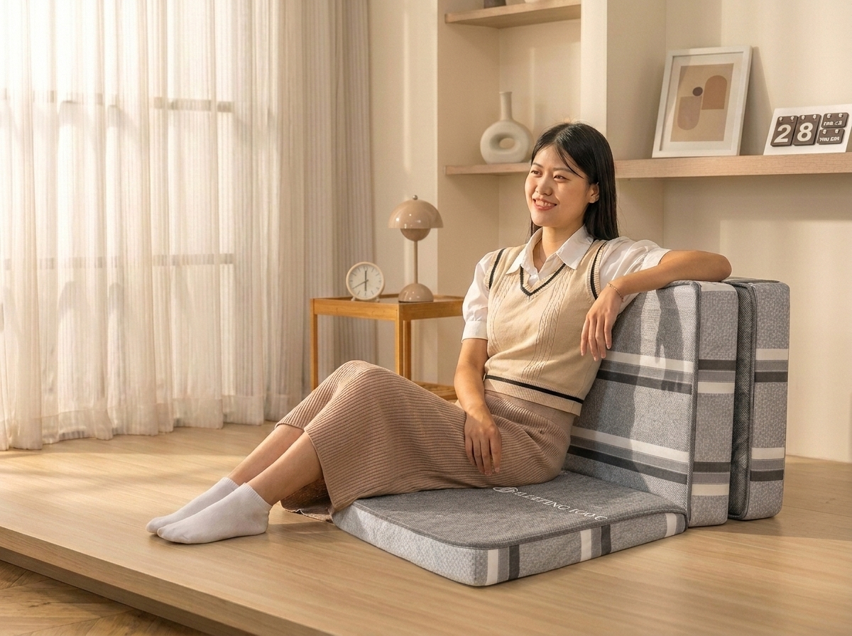 慵懶科技再升級!輕巧的三折設計(*參考舊圖 image_0.png*),展開是舒適好床,折疊起來可當作和室沙發靠墊,或是輕鬆收進衣櫃與角落,完全不佔空間。無論是新婚成家、租屋族、客房備用,這款不塌陷的三折床墊都是新莊區家庭最聰明、高 CP 值的選擇,真正守護您的慵懶品質。